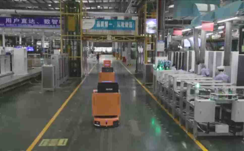 为车载冰箱物流配送打造的智能解决方案,,,,包含产中物流通过潜伏举升AMR搬运至线边,,,,产后成品物流智能仓储,,,,流程包含产中物流智能齐套入库,,线边安灯叫料AMR智能配送至线边,,,成品入库、、、、出库,,,通过无人堆高车机器人,,,智能仓储管理替代人工作业管理,,,,实现更高存储、、更高效率、、、、更具柔性化的解决方案。。